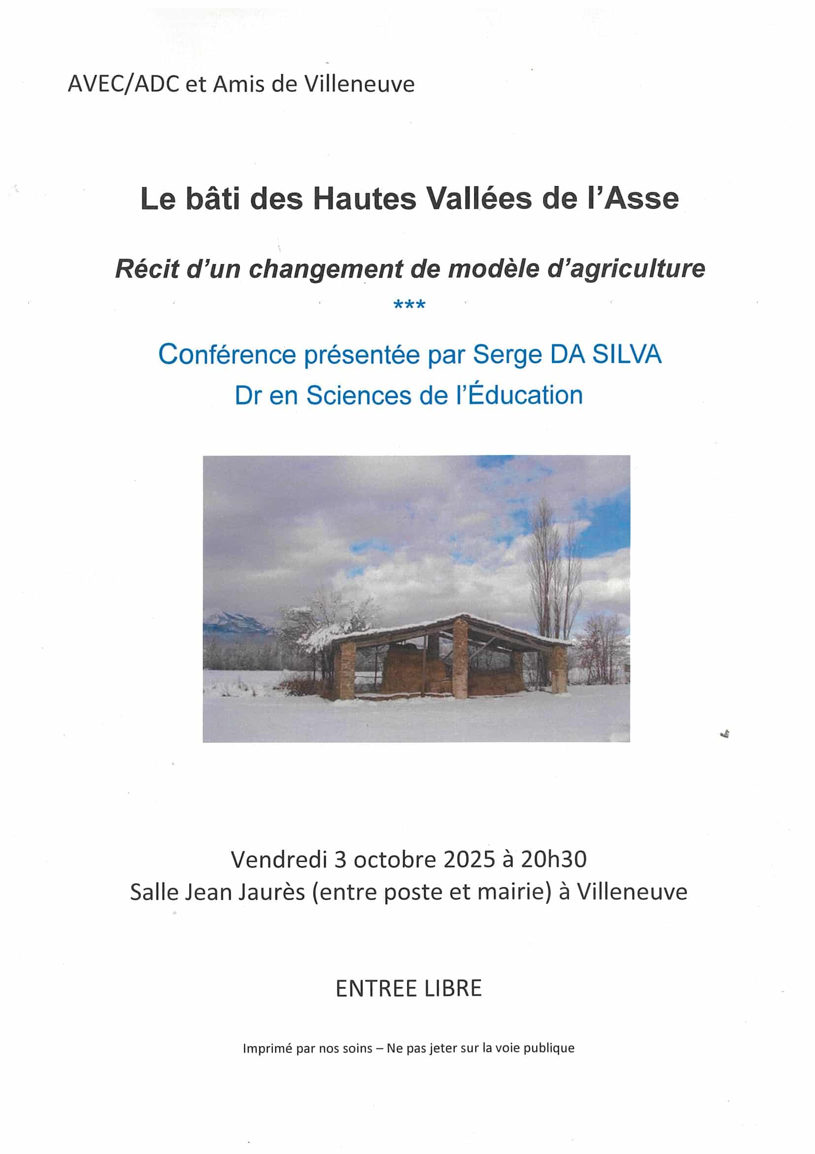 « Tous les Évènements Cet évènement est passé. Conférence » Le bâti des Hautes Vallées de l’Asse » octobre 3 @ 8:30 pm - 11:59 pm « Soirée Dégustation « Des Copains et des Vins » Histoires du 1er » Ajouter au calendrier Google Agenda iCalendar Outlook 365 Outlook Live Détails Date : octobre 3 Heure : 8:30 pm - 11:59 pm Catégorie d’Évènement: Conférence / Débat / Rencontre Organisateur Association Les Amis de Villeneuve Téléphone 06 28 14 24 78 E-mail henri.chambefort@orange.fr Lieu Salle Jean Jaurès Chemin neuf Villeneuve, 04180 France + Google Map Évènements liés Automne Musical 25 : « Splendeur de la musique baroque » octobre 14 @ 6:30 pm - 8:00 pm Conférence : « Comment découvrir ses propres forces de vie ? » octobre 15 @ 12:00 am - 11:59 pm Protéger les vieux arbres, l’histoire d’une compensation octobre 15 @ 3:45 pm - 5:00 pm