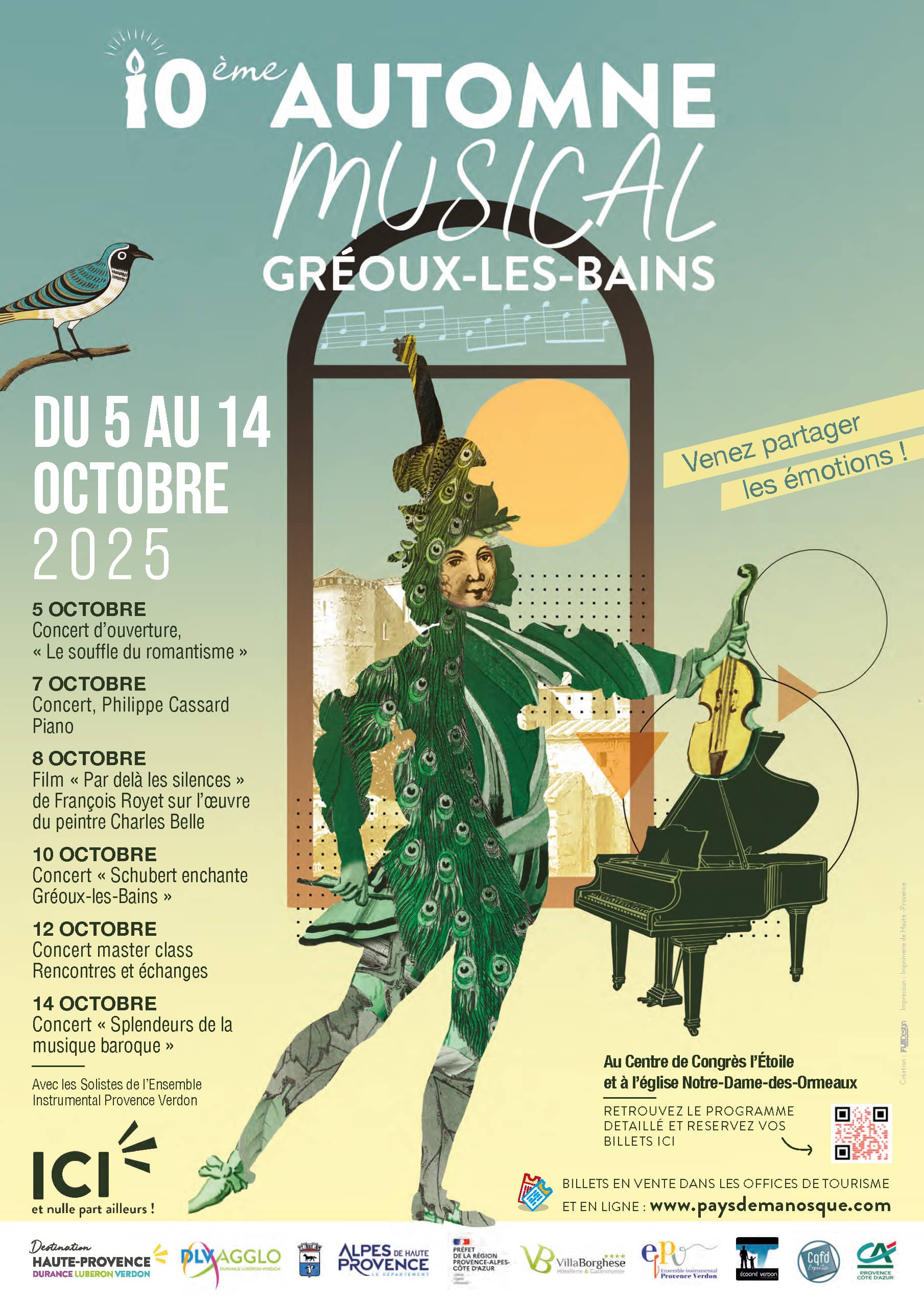 église notre dame des ormeaux place de l'Hôtel de Ville, Gréoux-les-Bains, FranceOrganisé par l’Ensemble Instrumental Provence Verdon et l’Office de Tourisme du Pays de Manosque, cet événement propose chaque année un rendez-vous musical d’exception. En 2025, nous fêtons les 10 ans de ce festival.