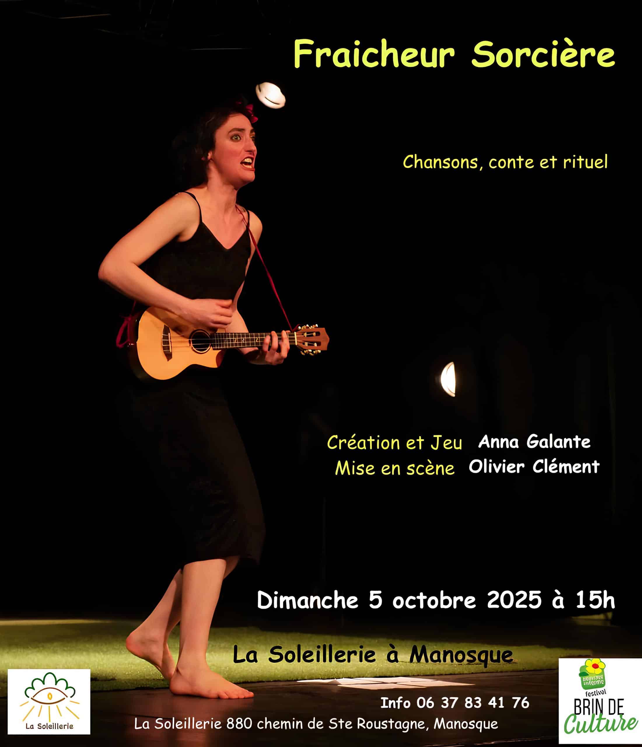La Soleillerie 880 Chemin de Sainte Roustagne, Manosque, FranceFraîcheur Sorcière par Anna Galante, mise en scène Olivier Clément.