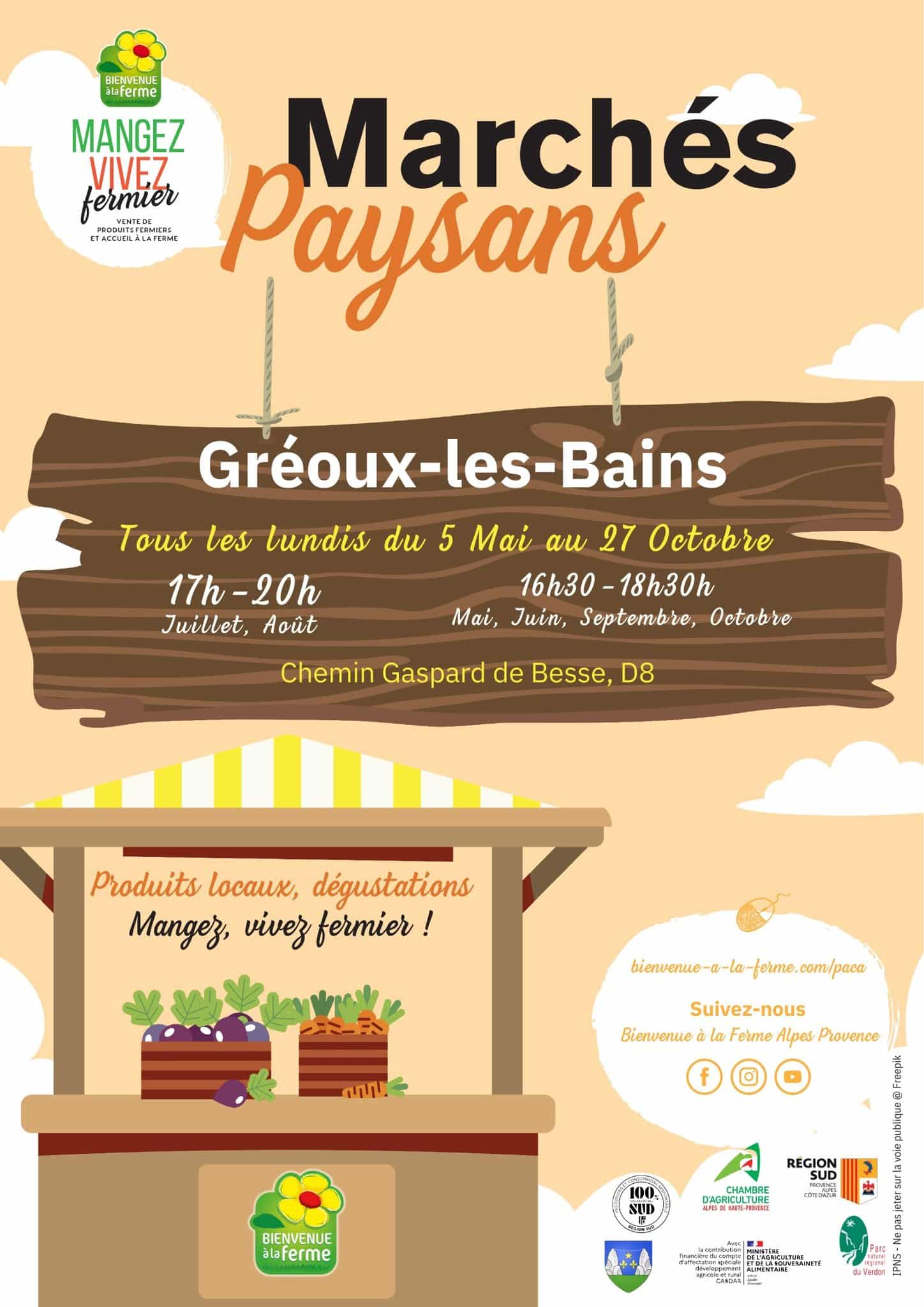 Chemin Gaspard de Besse, D8 (04800) Chemin Gaspard de Besse, D8, Gréoux-les-Bains, FranceMarché de Producteurs tous les lundis de Mai à Octobre à Gréoux les Bains.